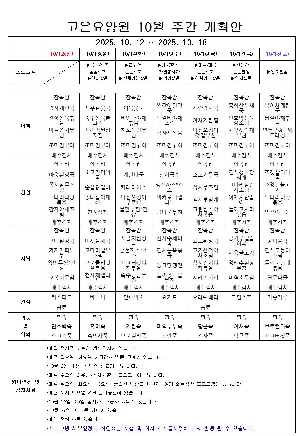 2025. 10. 12 ~ 2025. 10. 18 주간계획안내