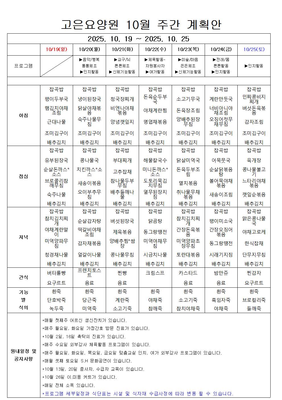 2025. 10. 19 ~ 2025. 10. 25 주간계획안내